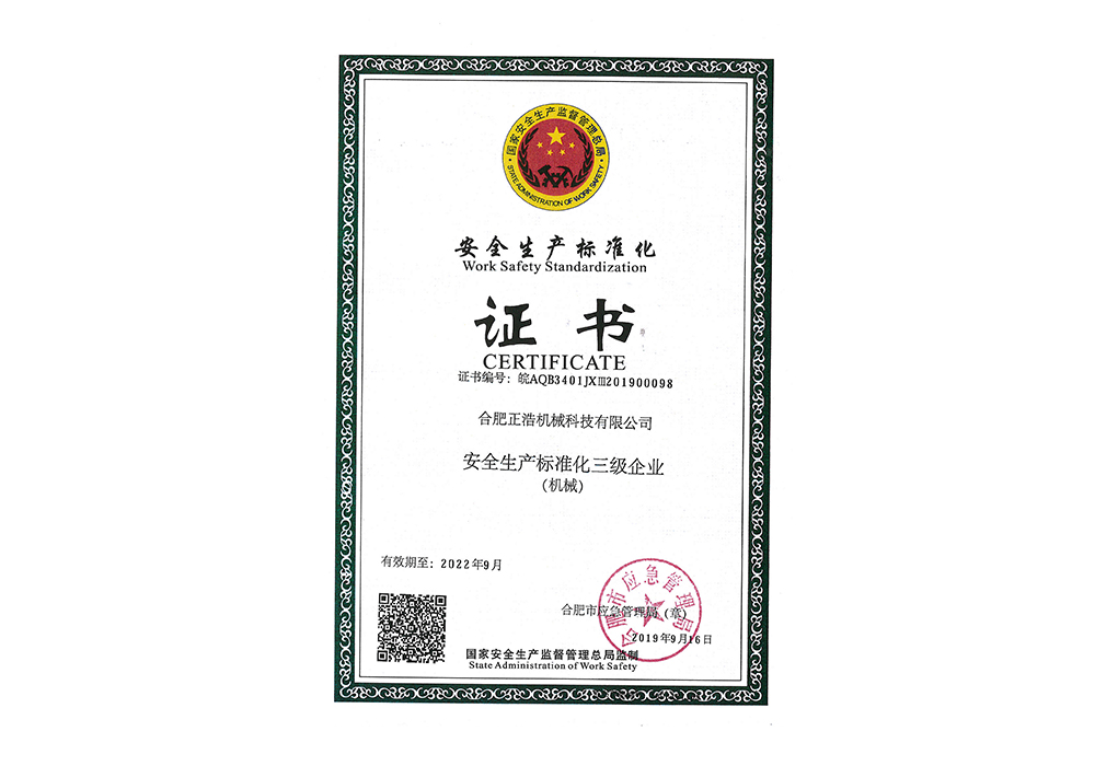 安全生產(chǎn)標(biāo)準(zhǔn)化證書